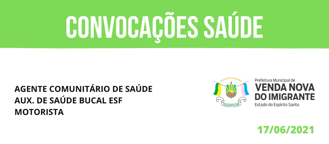 SECRETARIA DE SAÚDE CONVOCA AUX. DE SAÚDE BUCAL ESF, AGENTE COMUNITÁRIO DE SAÚDE E MOTORISTA
