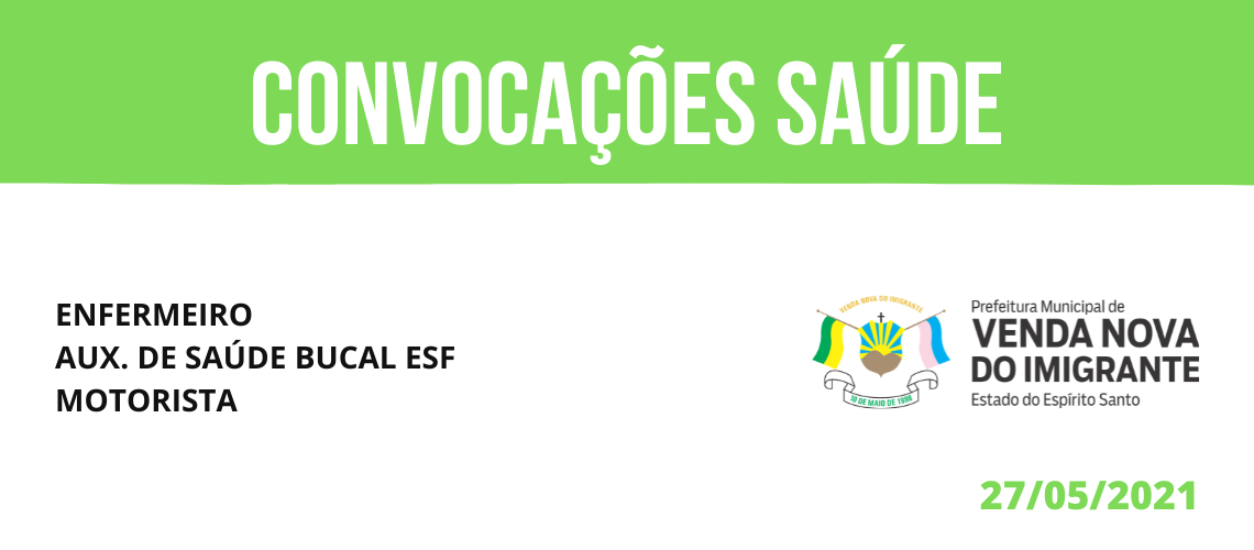 SECRETARIA DE SAÚDE CONVOCA AUX. DE SAÚDE BUCAL ESF, ENFERMEIRO E MOTORISTA.