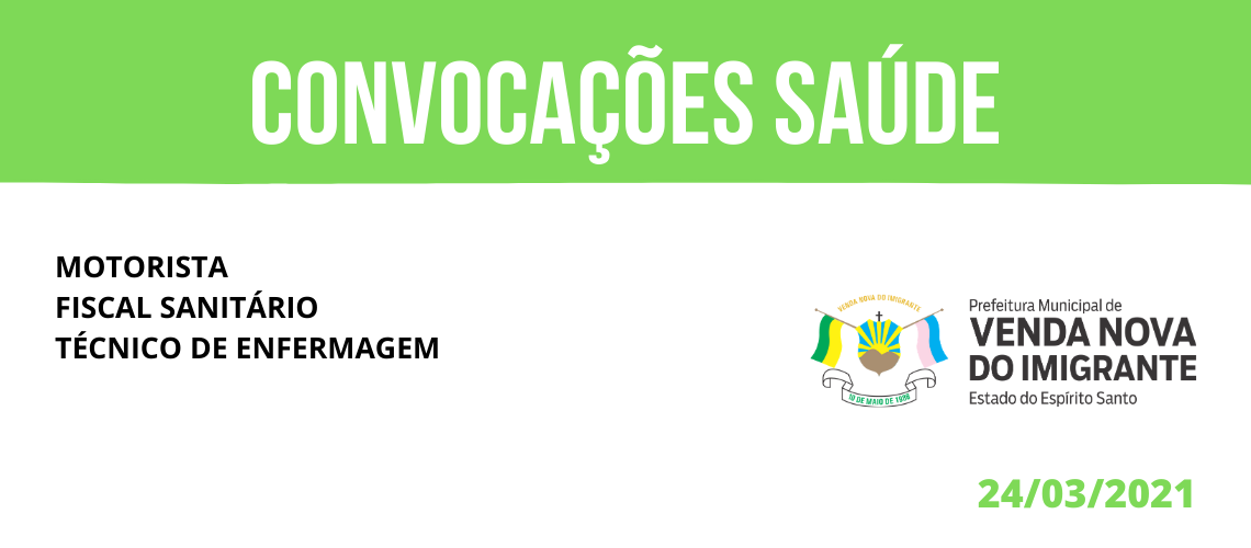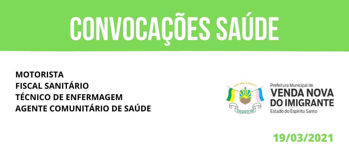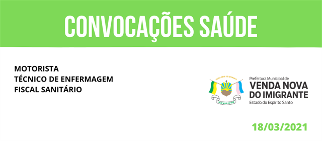 Saúde convoca Motorista, Fiscal Sanitário e Técnico de Enfermagem