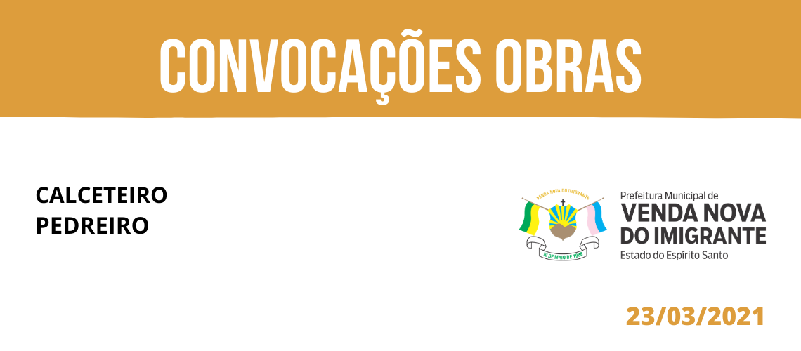 Secretaria de Obras convoca Pedreiro e Calceteiro