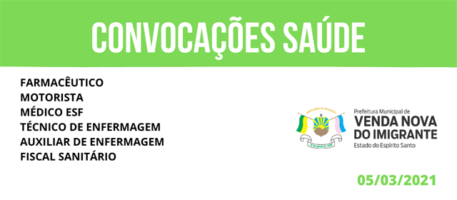 Chamada é para os cargos de farmacêutico, motorista, médico ESF, técnico de enfermagem e fiscal sanitário.
