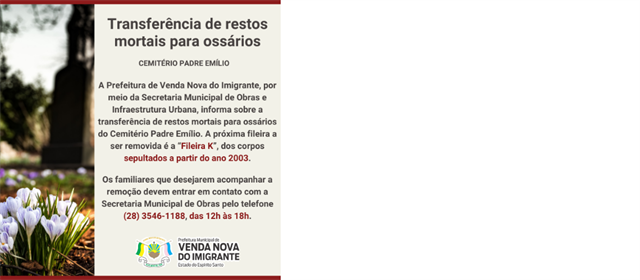 Transferência de restos mortais para ossários do Cemitério Padre Emílio