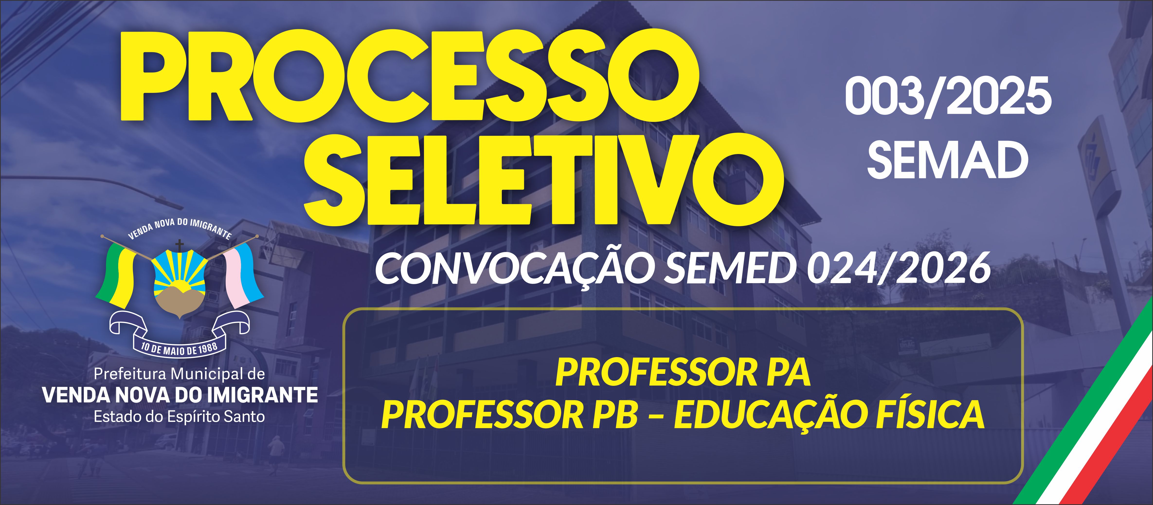 CONVOCAÇÃO SEMED 024/2026 - PROFESSOR PA E PROFESSOR PB – EDUCAÇÃO FÍSICA - 24/02/2026