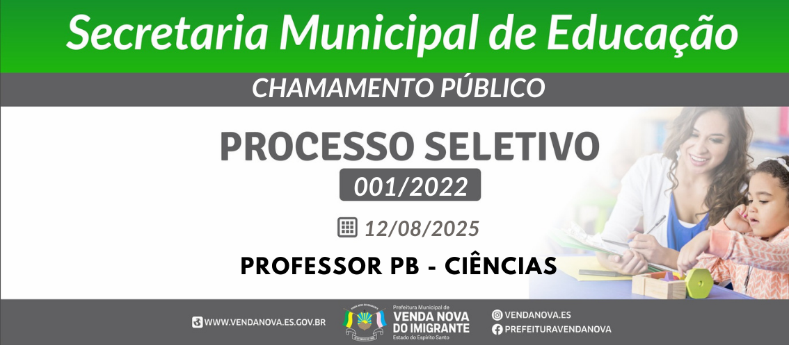CONVOCAÇÃO POR CURRÍCULO - PROFESSOR PB CIÊNCIAS