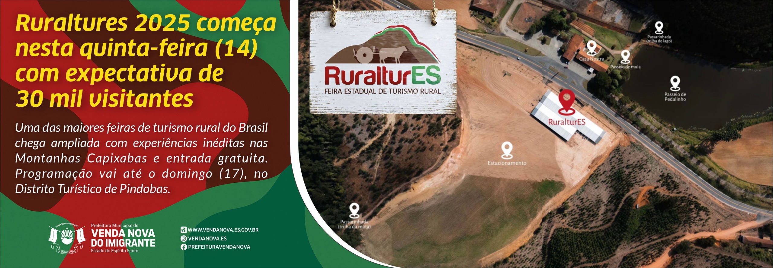 Uma das maiores feiras de turismo rural do Brasil chega ampliada com experiências inéditas nas Montanhas Capixabas e entrada gratuita. Programação vai até o domingo (17), no Distrito Turístico de Pindobas.