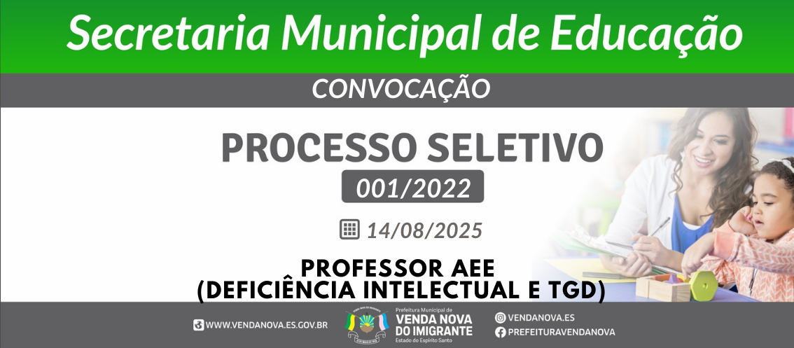CONVOCAÇÃO PROFESSOR AEE (DEFICIÊNCIA INTELECTUAL E TGD)