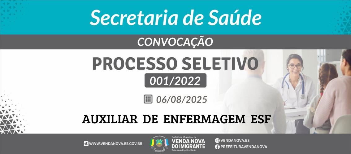 CONVOCAÇÃO PARA SUPRIMENTO DE VAGAS EM REGIME DE DESIGNAÇÃO TEMPORÁRIA DE EXCEPCIONAL INTERESSE PÚBLICO - AUXILIAR DE ENFERMAGEM ESF
