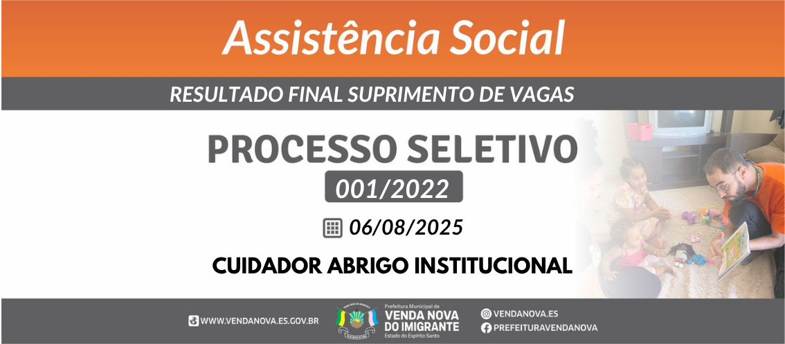 RESULTADO FINAL SUPRIMENTO DE VAGAS-CUIDADOR ABRIGO INSTITUCIONAL