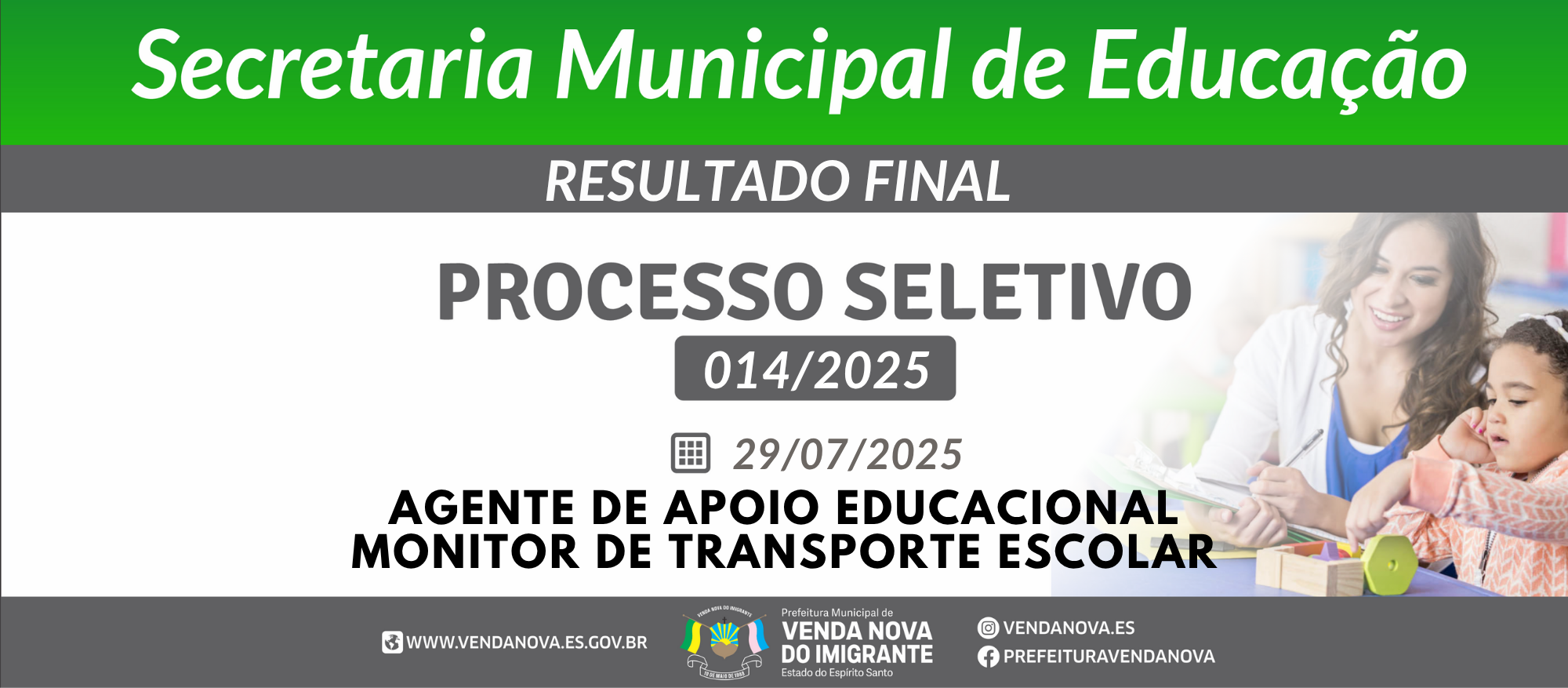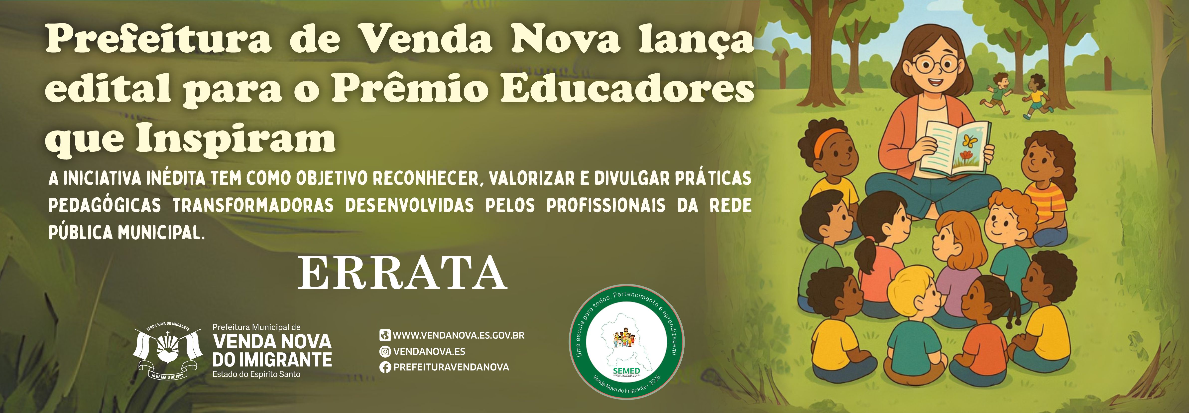Prefeitura de Venda Nova lança edital para o Prêmio Educadores que Inspiram EDITAL Nº 015/2025