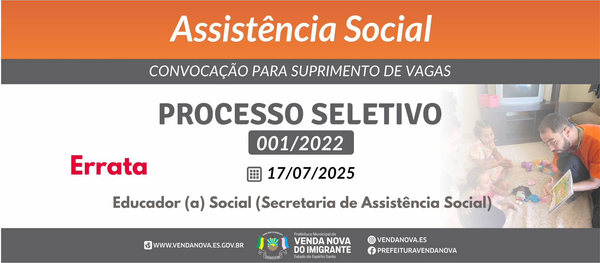 EDITAL DE CONVOCAÇÃO - SUPRIMENTOS DE VAGAS ASSISTÊNCIA SOCIAL