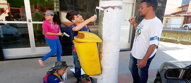 Com a tinta e materiais fornecidos pela Prefeitura, eles colocaram as mãos na massa pela cidade