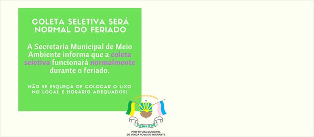 Coleta seletiva funciona normalmente no feriado