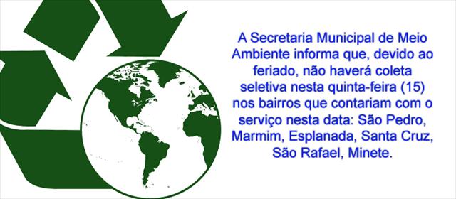 Coleta Seletiva será suspensa no feriado