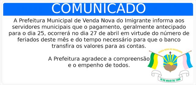 Pagamento, geralmente antecipado para o dia 25, será feito no dia 27