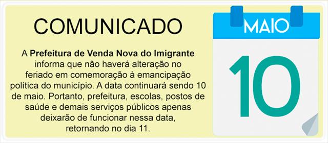 Prefeitura informa que não haverá alteração no Feriado do Município