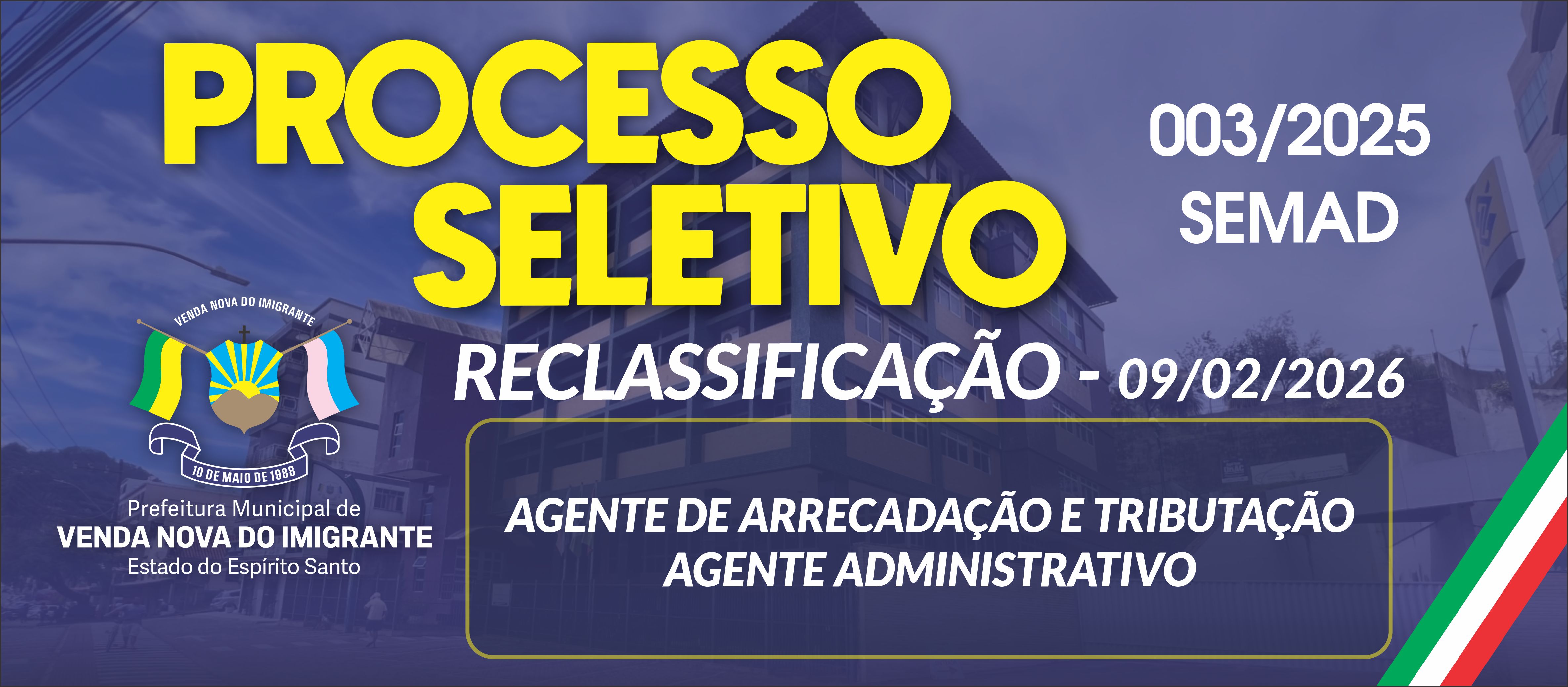 RECLASSIFICAÇÃO - AGENTE DE ARRECADAÇÃO E TRIBUTAÇÃO - AGENTE ADMINISTRATIVO - 09/02/2026