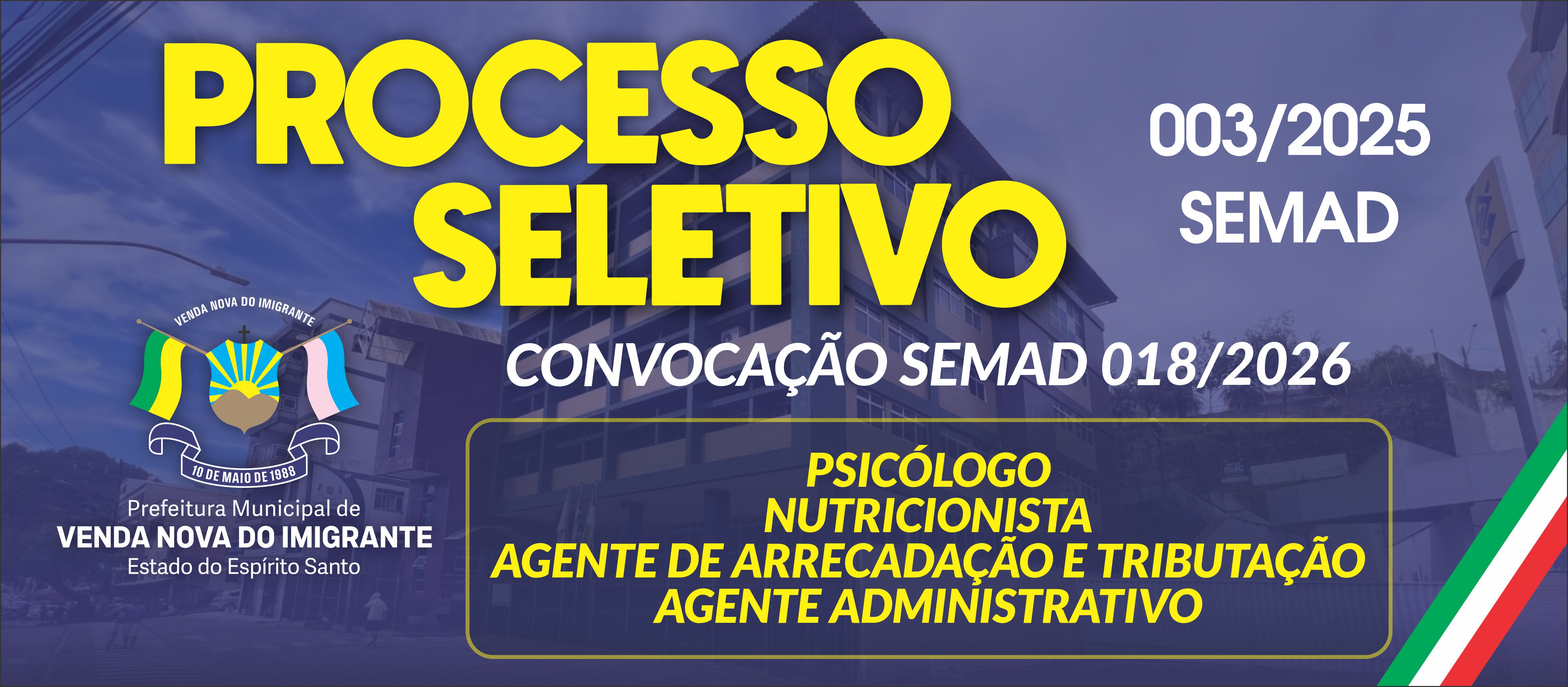 CONVOCAÇÃO SEMAD 018/2026 - PSICÓLOGO - NUTRICIONISTA - AGENTE DE ARRECADAÇÃO E TRIBUTAÇÃO - AGENTE ADMINISTRATIVO - 09/02/2026