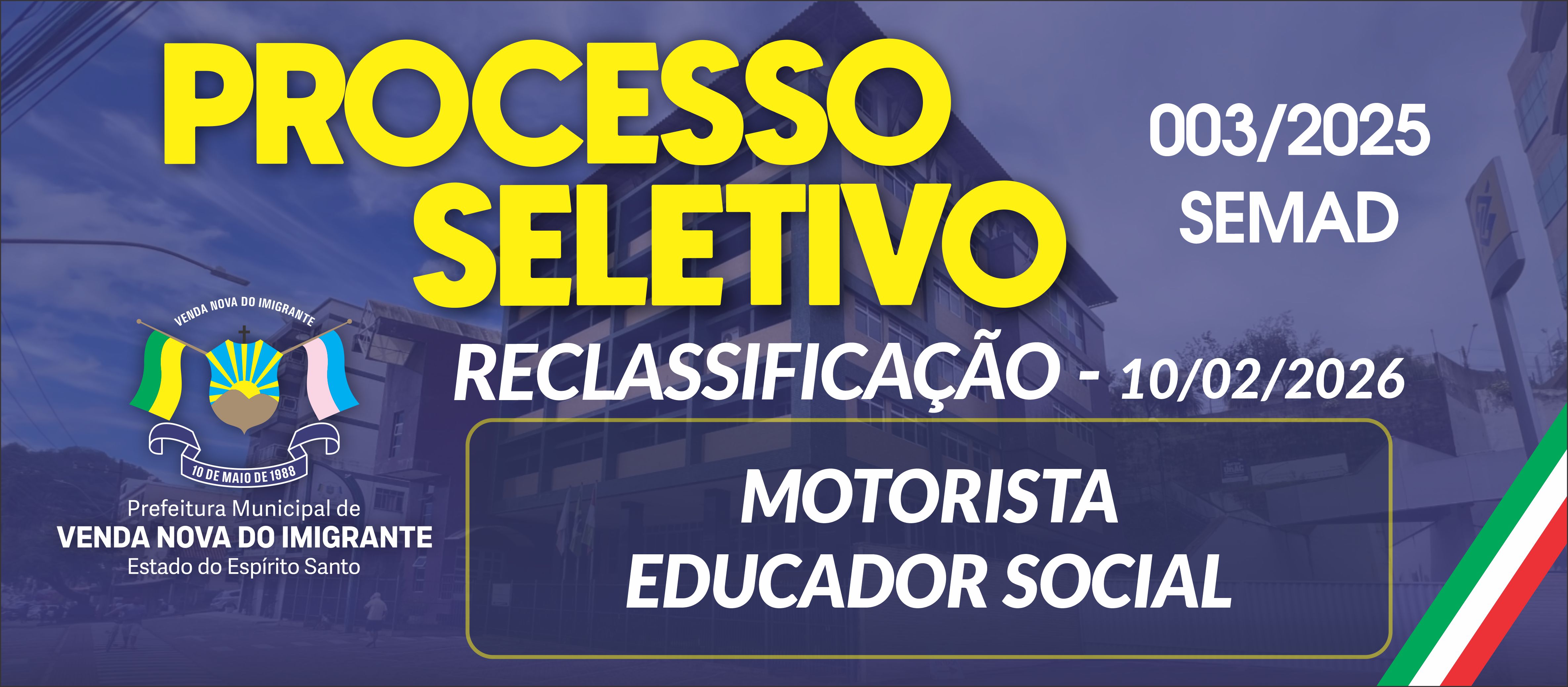 RECLASSIFICAÇÃO - EDUCADOR SOCIAL (SECRETARIADE ASSISTÊNCIA SOCIAL) E MOTORISTA - (SECRETARIA M. DE ADMINISTRAÇÃO) - 10/02/2026