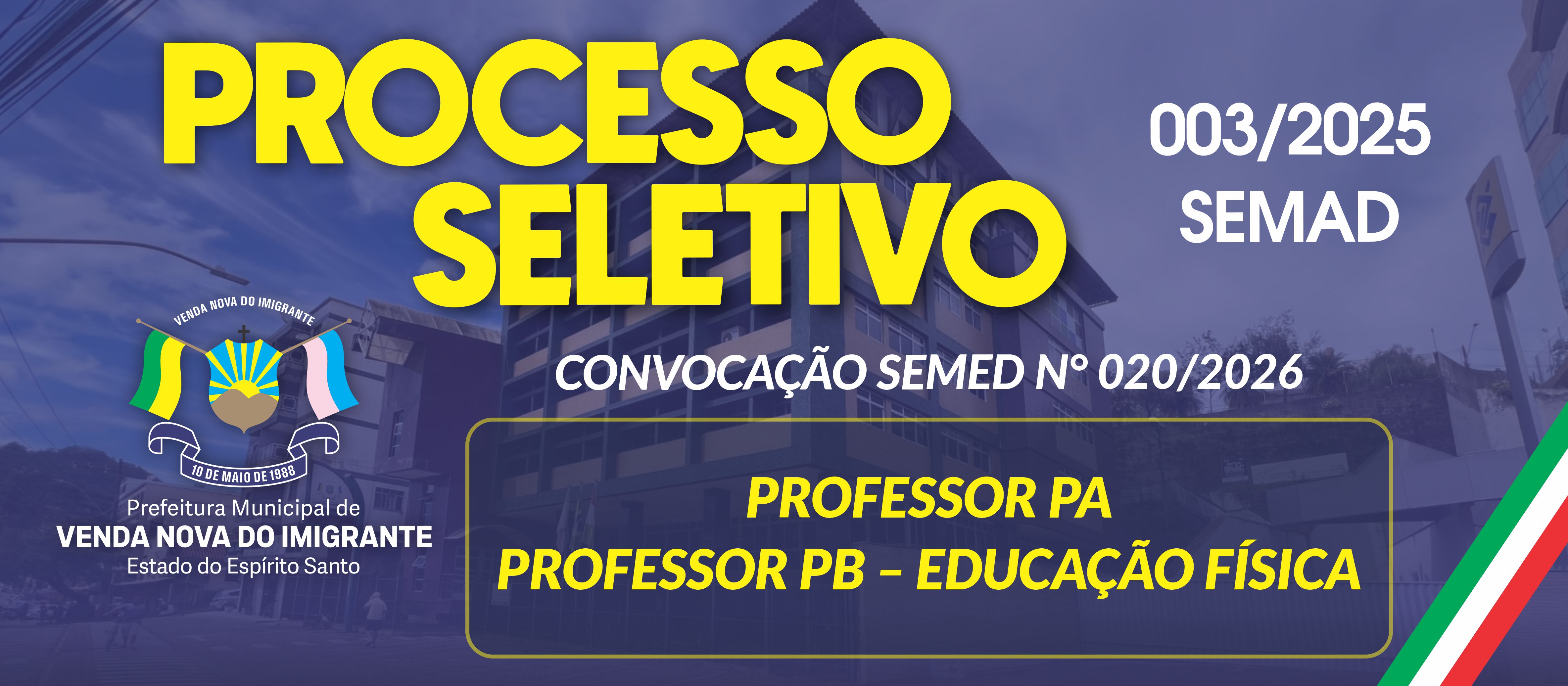CONVOCAÇÃO SEMED N° 020/2026 - PROFESSOR PA PROFESSOR PB – EDUCAÇÃO FÍSICA - 11/02/2026