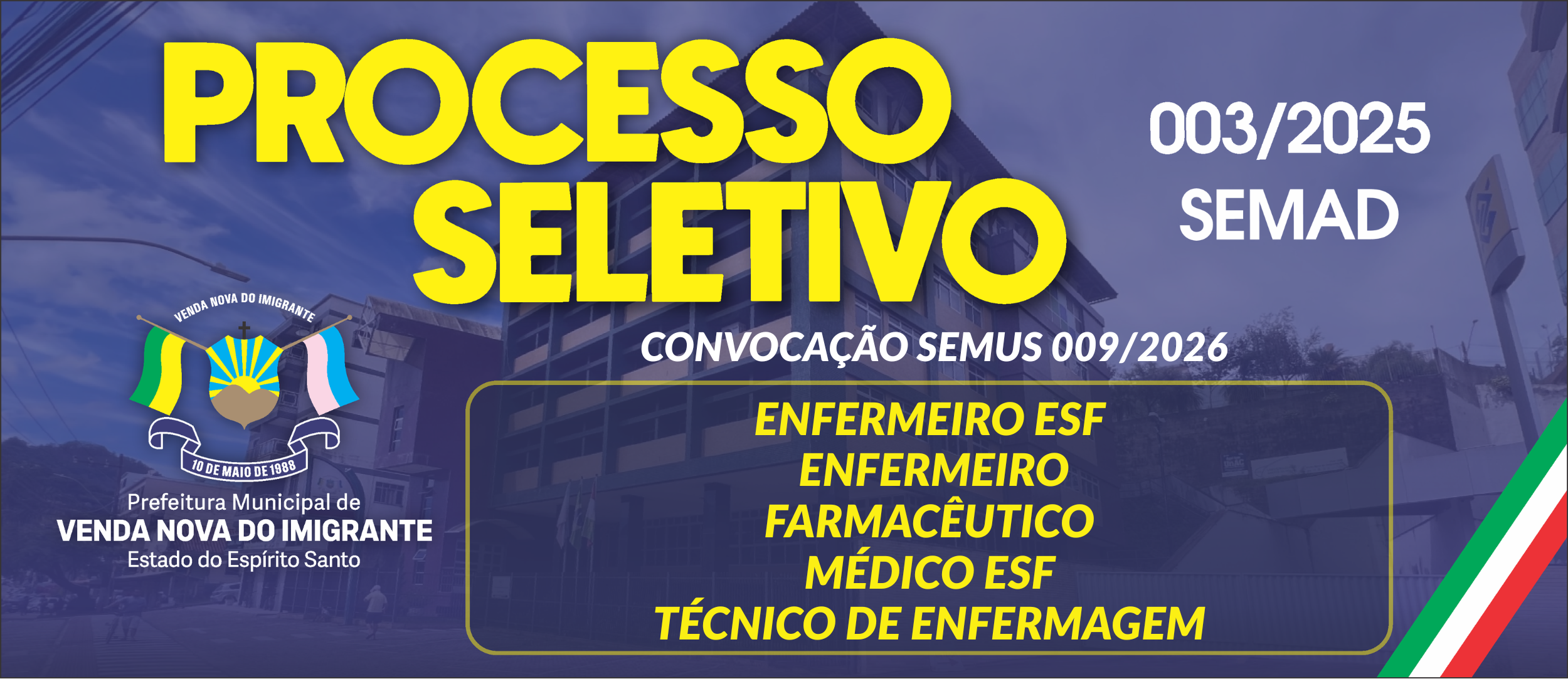 ENFERMEIRO ESF - ENFERMEIRO - FARMACÊUTICO - MÉDICO ESF - TÉCNICO DE ENFERMAGEM - PROCESSO SELETIVO SEMAD Nº 003/2025
