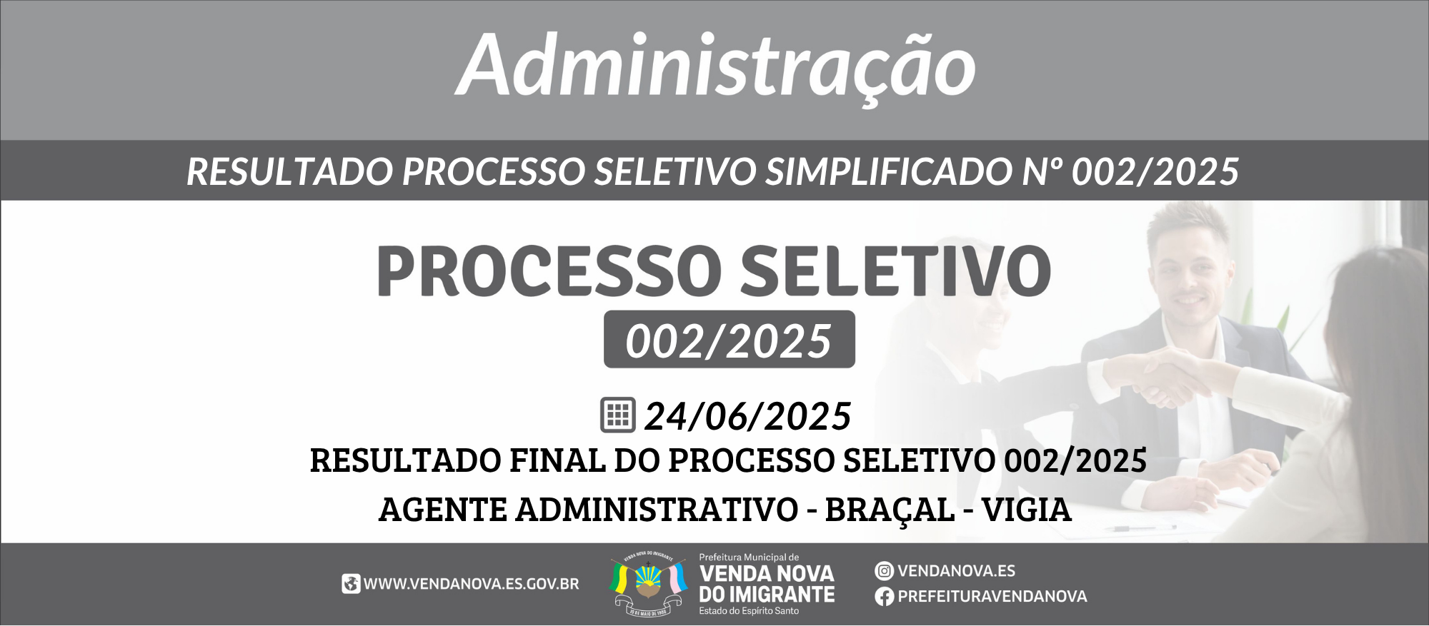 PROCESSO SELETIVO 002/2025: CONVOCAÇÃO ADMINISTRAÇÃO