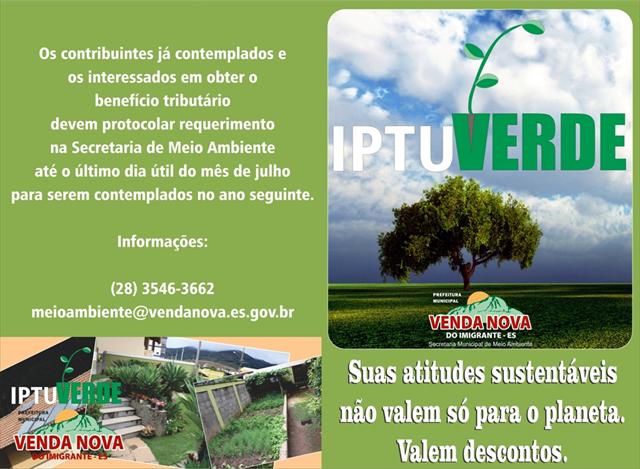 Inscrições para o programa IPTU Verde terminam dia 31 de julho