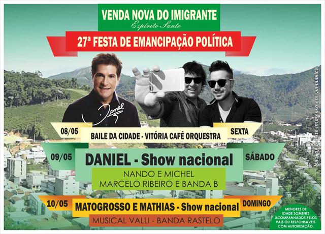 Programação da 27ª Festa de Emancipação Política VNI