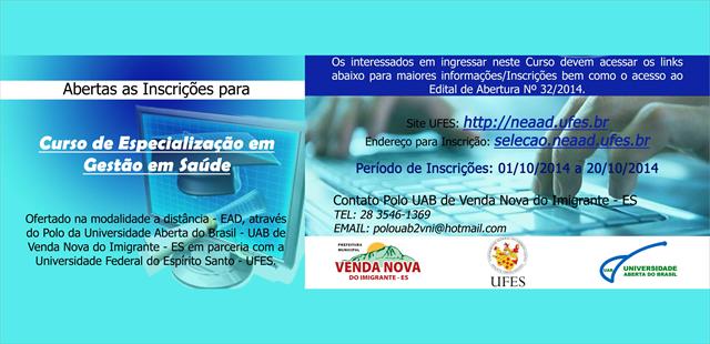 Curso é parceria com a Universidade Federal do Estado do Espirito Santo (UFES).