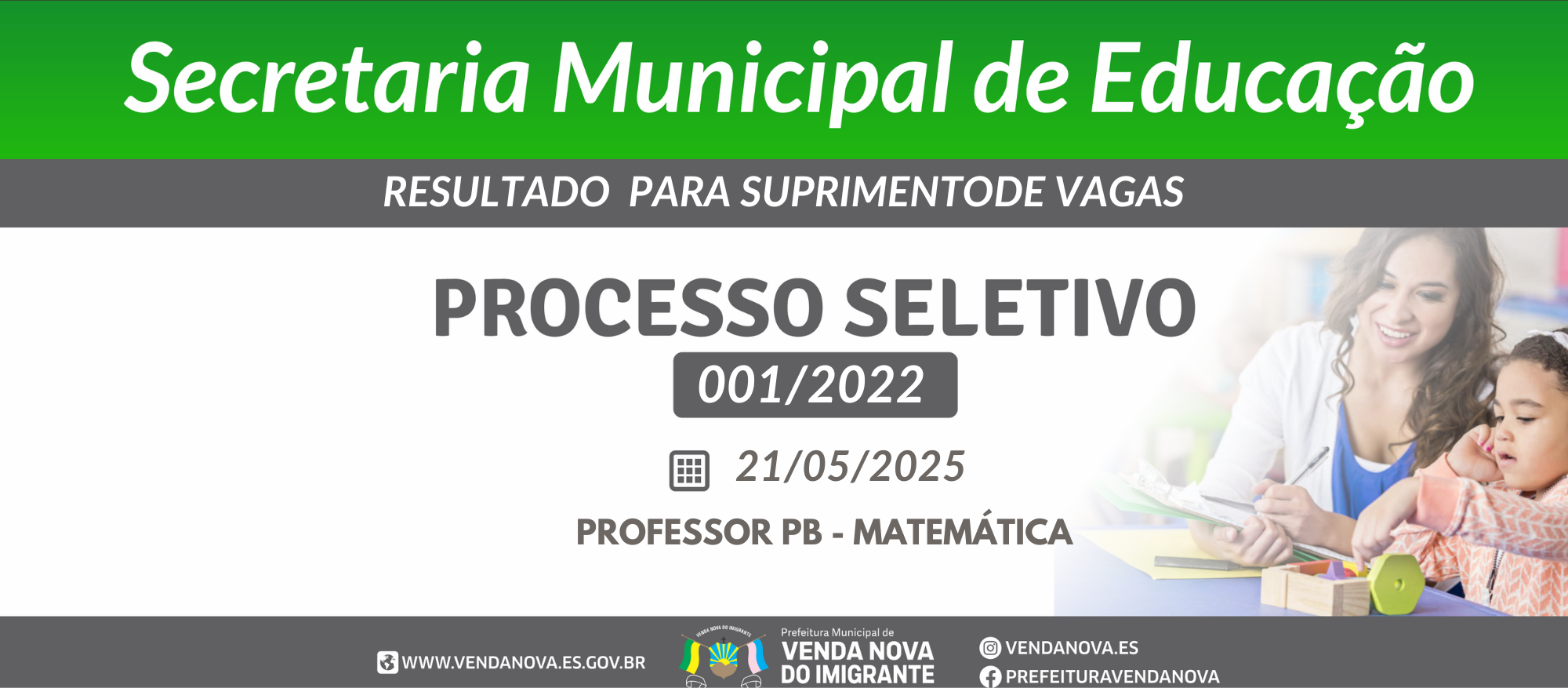 RESULTADO DE SUPRIMENTO DE VAGAS – PROFESSOR PB – MATEMÁTICA