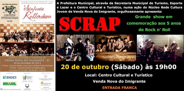 Shows da Banda Scrap e da Orquestra de Câmara da Holanda no Centro Cultural e Turístico de Venda Nova do Imigrante