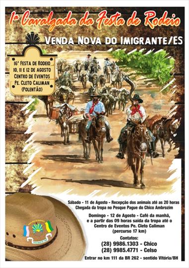 Cavalgada será do Pesque e Pague Chico Ambrozim até o Centro de Eventos Pe. Cleto Caliman, no domingo (12 de Agosto).