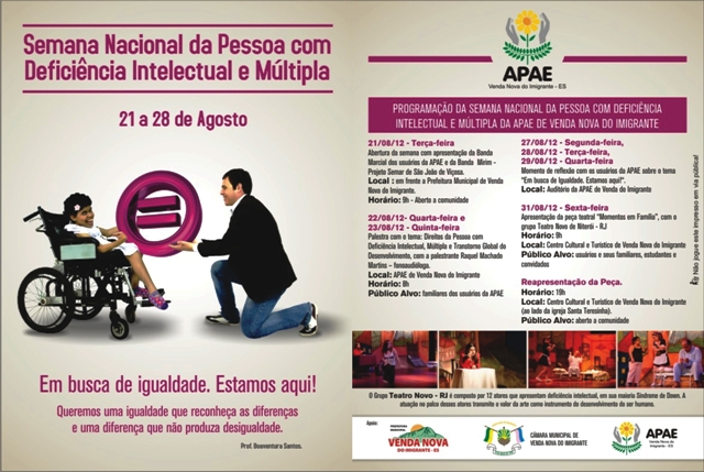 Participe da programação da Semana Nacional da Pessoa com Deficiência da APAE/VNI