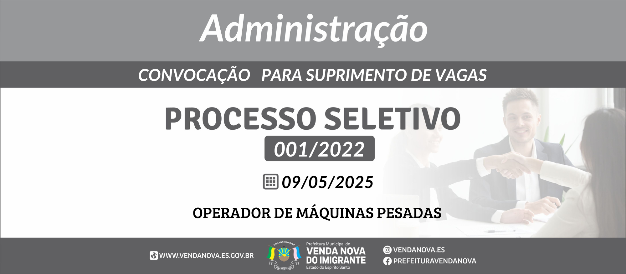 PROCESSO SELETIVO 001/2022: CONVOCAÇÃO DE ADMINSITRAÇÃO