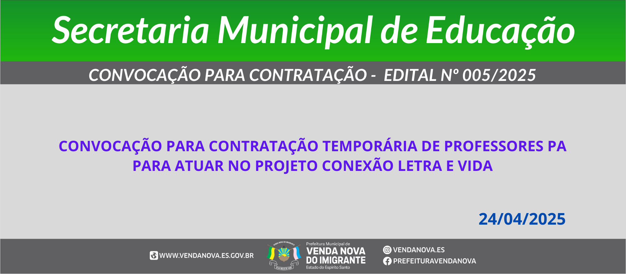 EDITAL 005?2025 - CONVOCAÇÃO PARA CONTRATAÇÃO - PROFESSOR PA