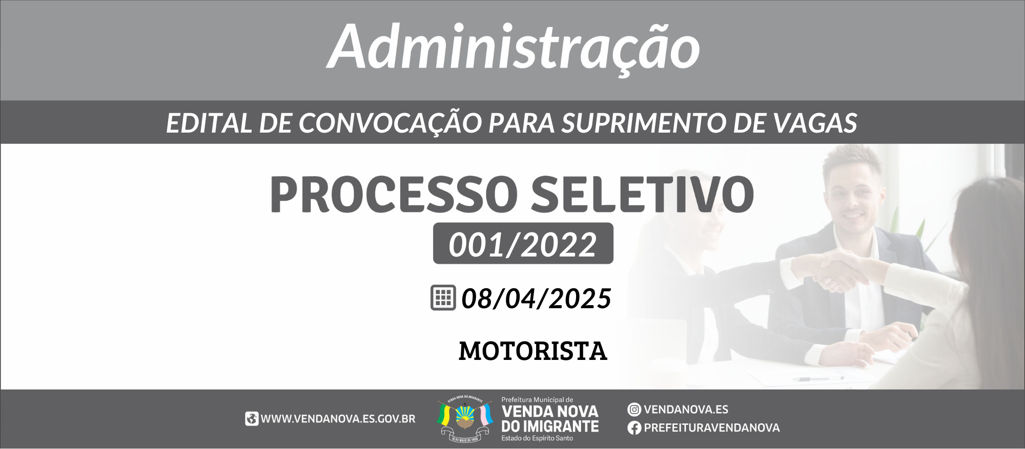 PROCESSO SELETIVO 001/2022: CONVOCAÇÃO ADMINISTRAÇÃO