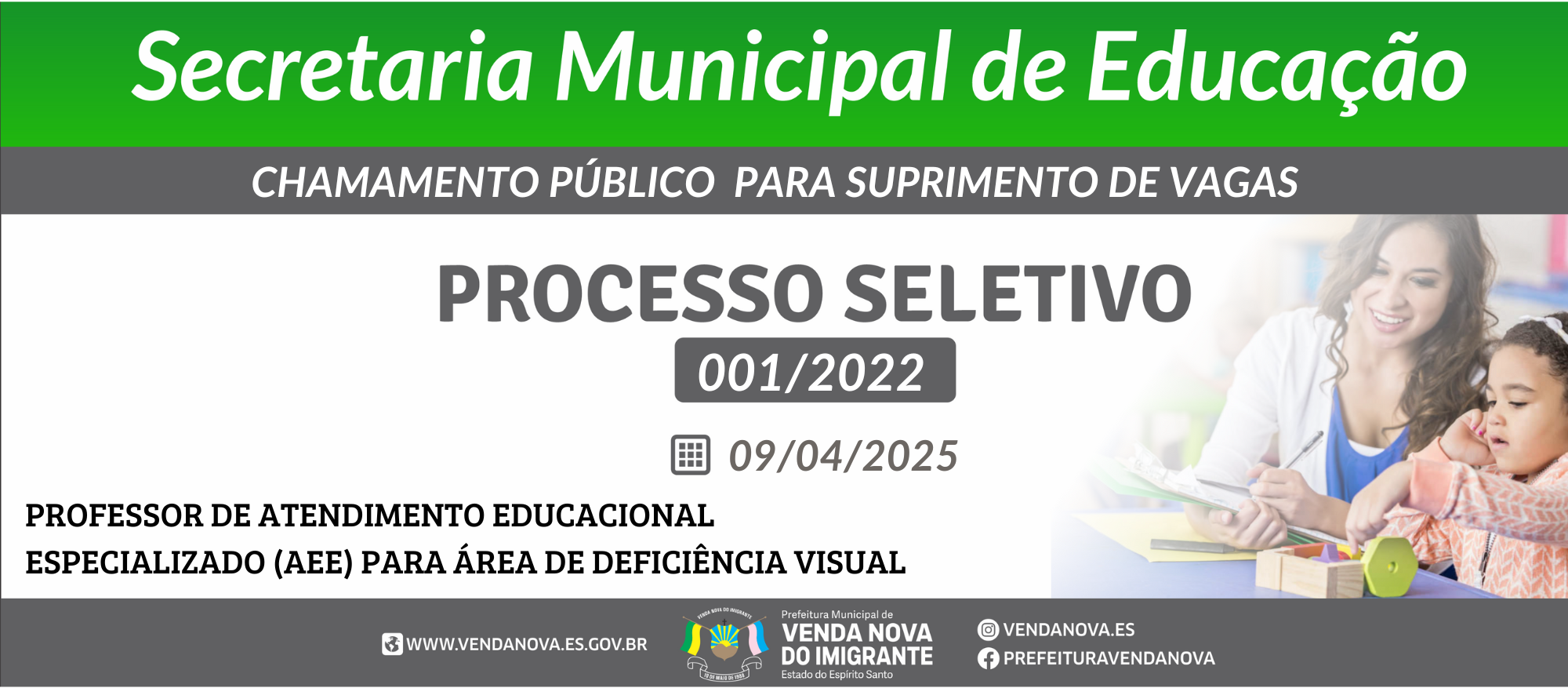 CONVOCAÇÃO Professor de Atendimento Educacional Especializado para área de Deficiência Visual CONFIRA .