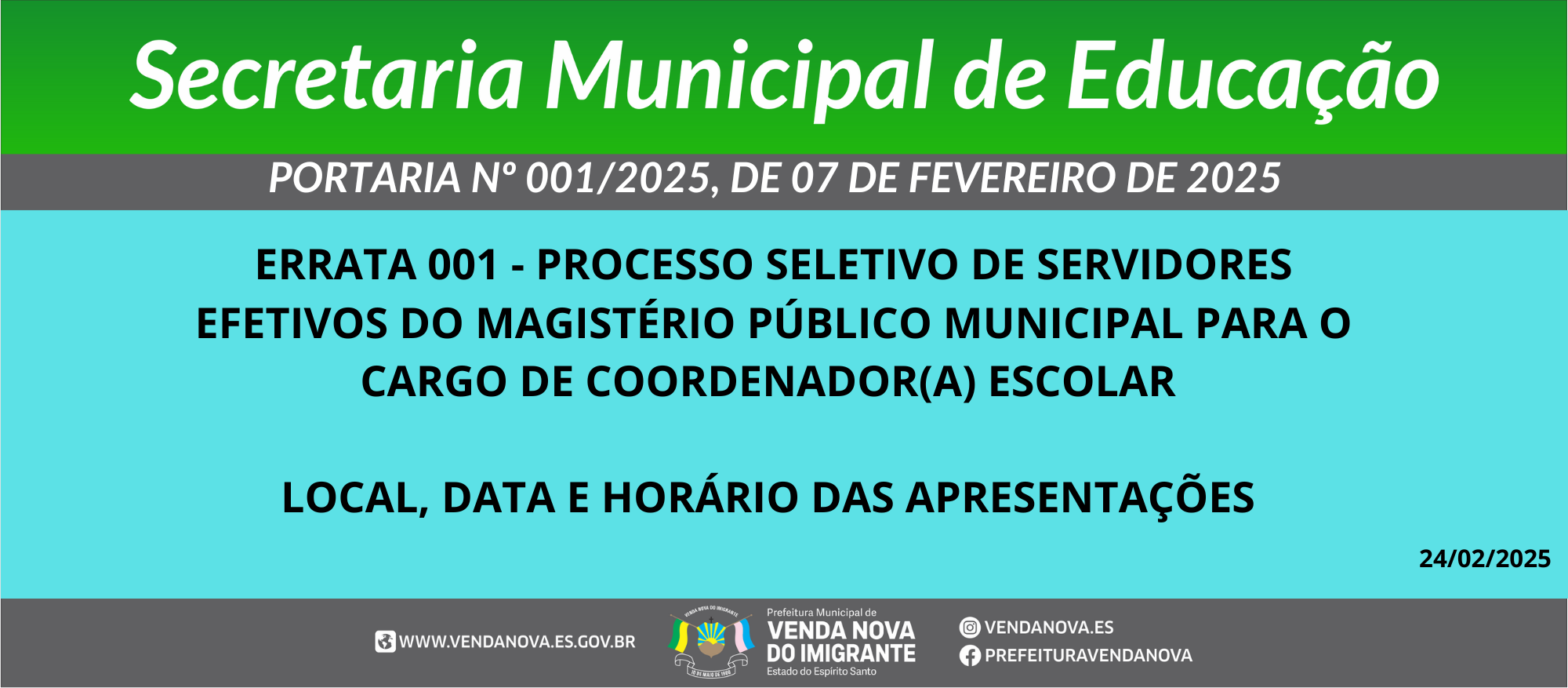 ERRATA N° 001 DA PORTARIA Nº 001/2025,