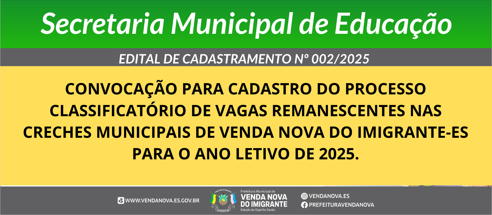 VAGAS REMANESCENTES NAS CRECHES MUNICIPAIS DE VENDA NOVA DO IMIGRANTE EM 2025