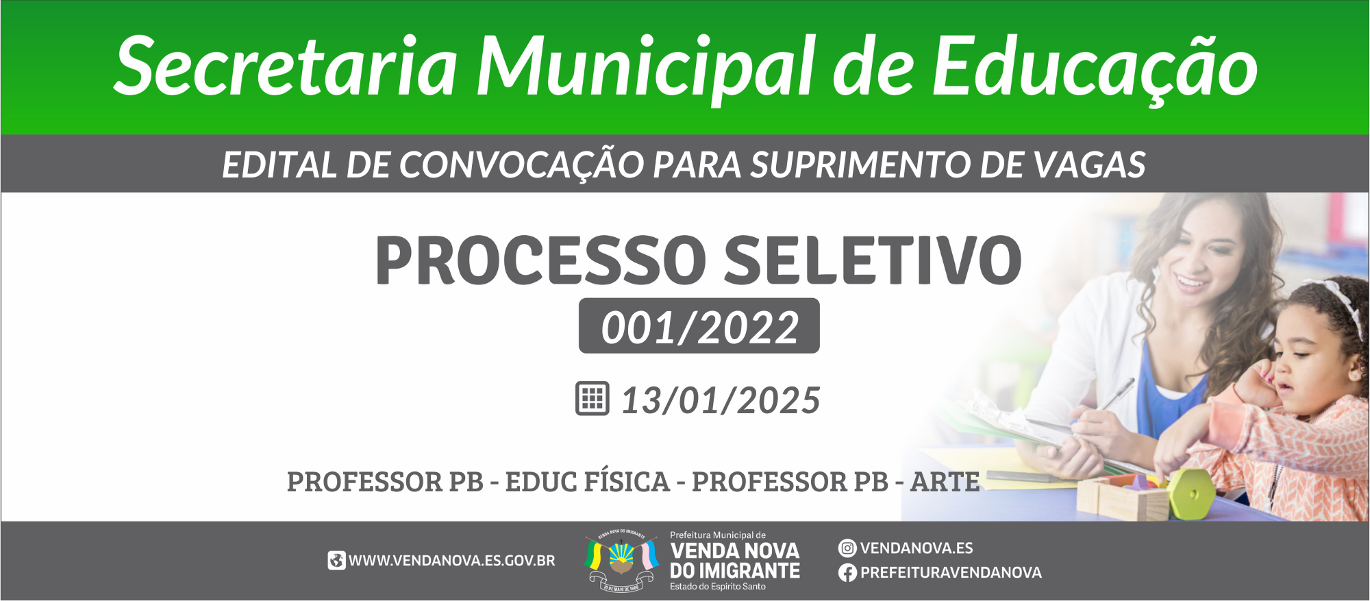 PROCESSO SELETIVO 001/2022: CONVOCAÇÃO EDUCAÇÃO