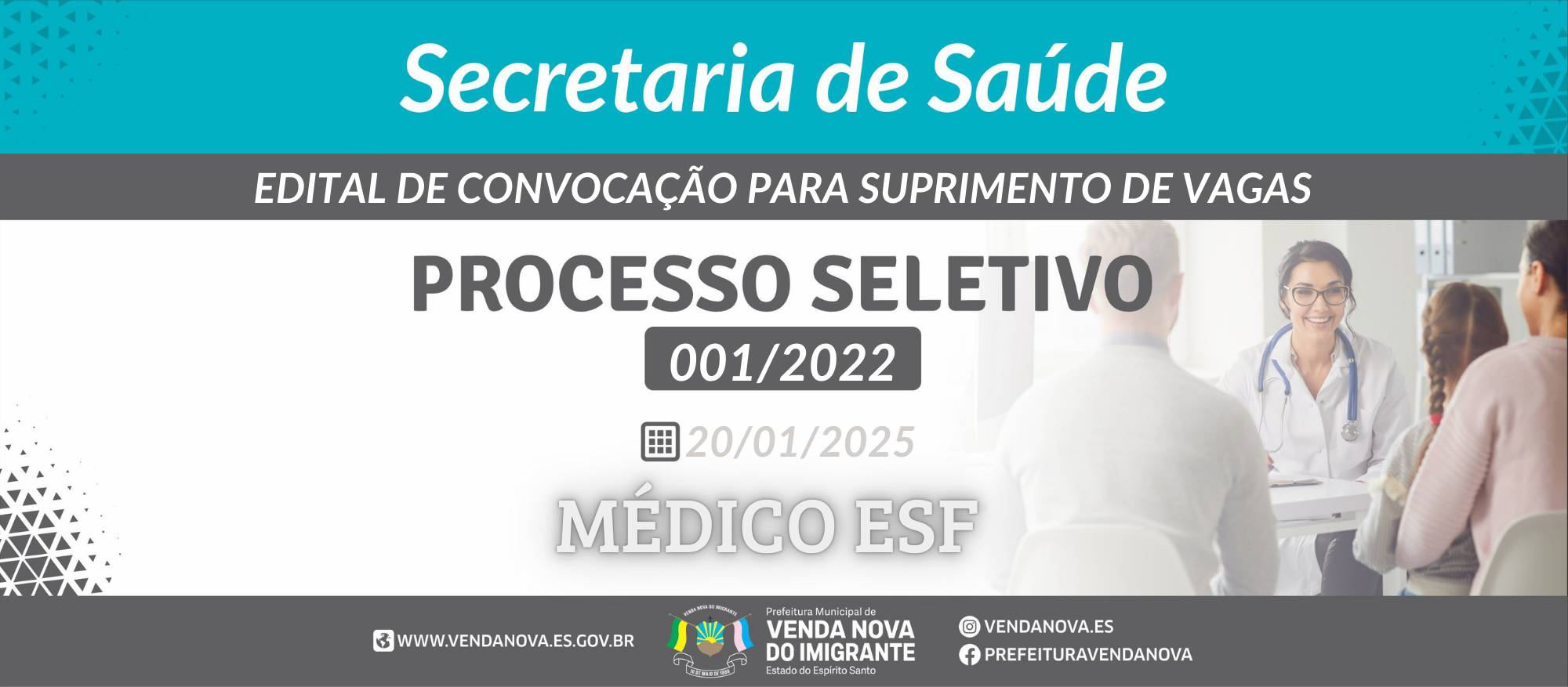 PROCESSO SELETIVO 001/2022: CONVOCAÇÃO SAÚDE