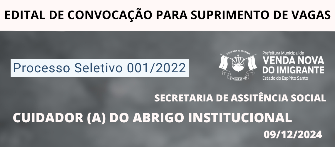 SUPRIMENTAÇÃO DE VAGAS - CUIDADOR DE ABRIGO INSTITUCIONAL - CONFIRA .