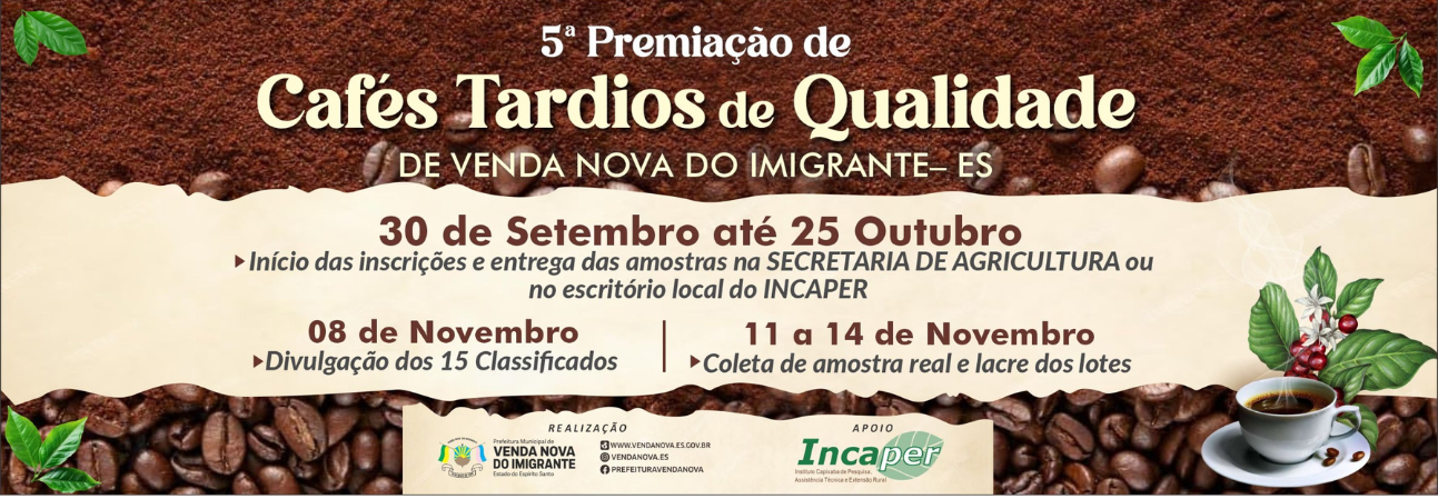 Venda Nova do Imigrante realiza 5ª Premiação de Cafés Tardios de Qualidade