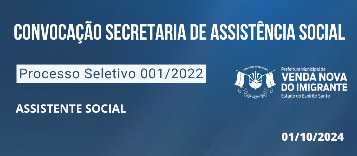 PROCESSO SELETIVO 001/2022: CONVOCAÇÃO ASSISTÊNCIA SOCIAL