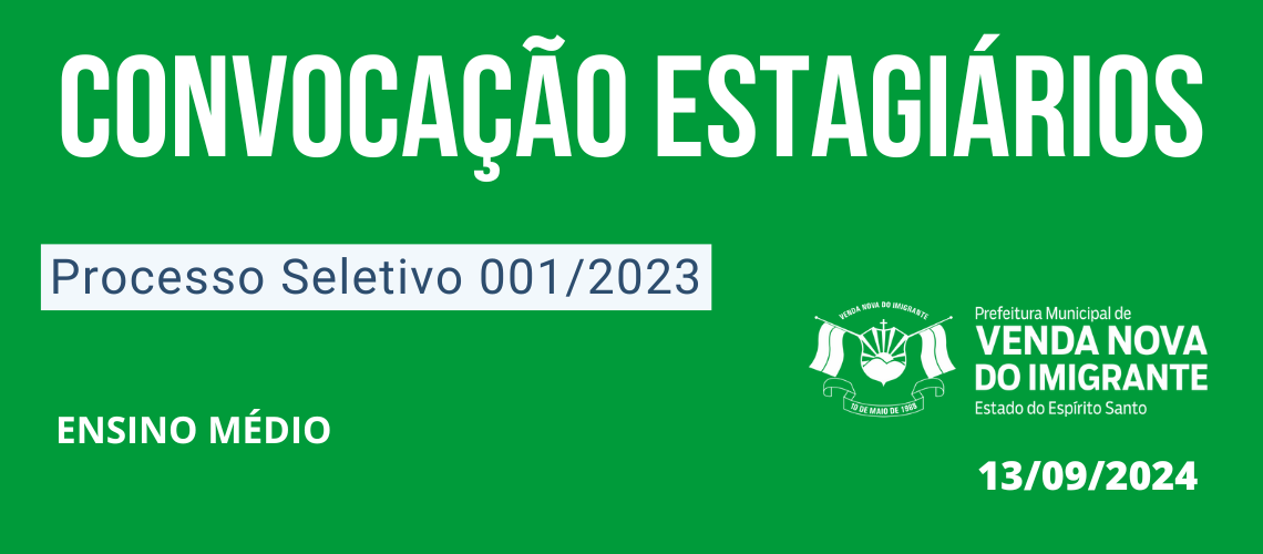 PROCESSO SELETIVO 001/2023: CONVOCAÇÃO ESTAGIÁRIO