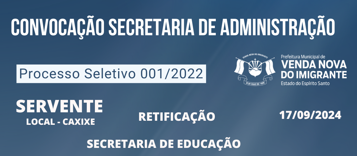 PROCESSO SELETIVO 01/2022: CONVOCAÇÃO ADMINISTRAÇÃO - EDUCAÇÃO