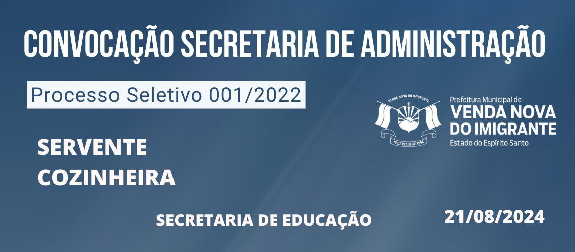 PROCESSO SELETIVO 01/2022: CONVOCAÇÃO ADMINISTRAÇÃO /EDUCAÇÃO