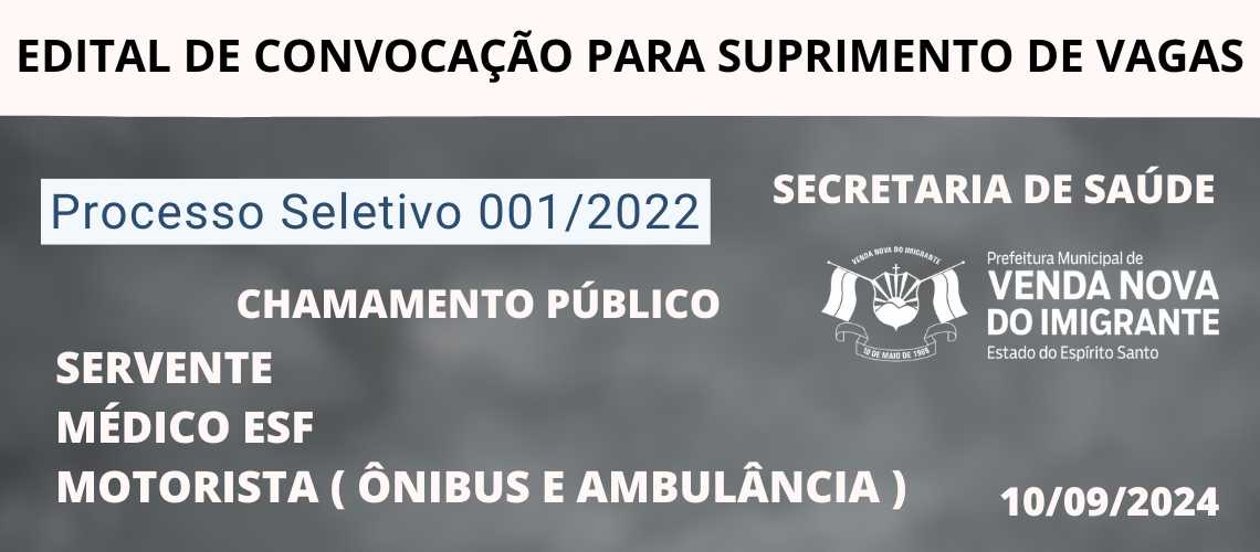 CHAMAMENTO - PÚBLICO - SERVENTE - MÉDICO ESF - MOTORISTA . CONFIRA
