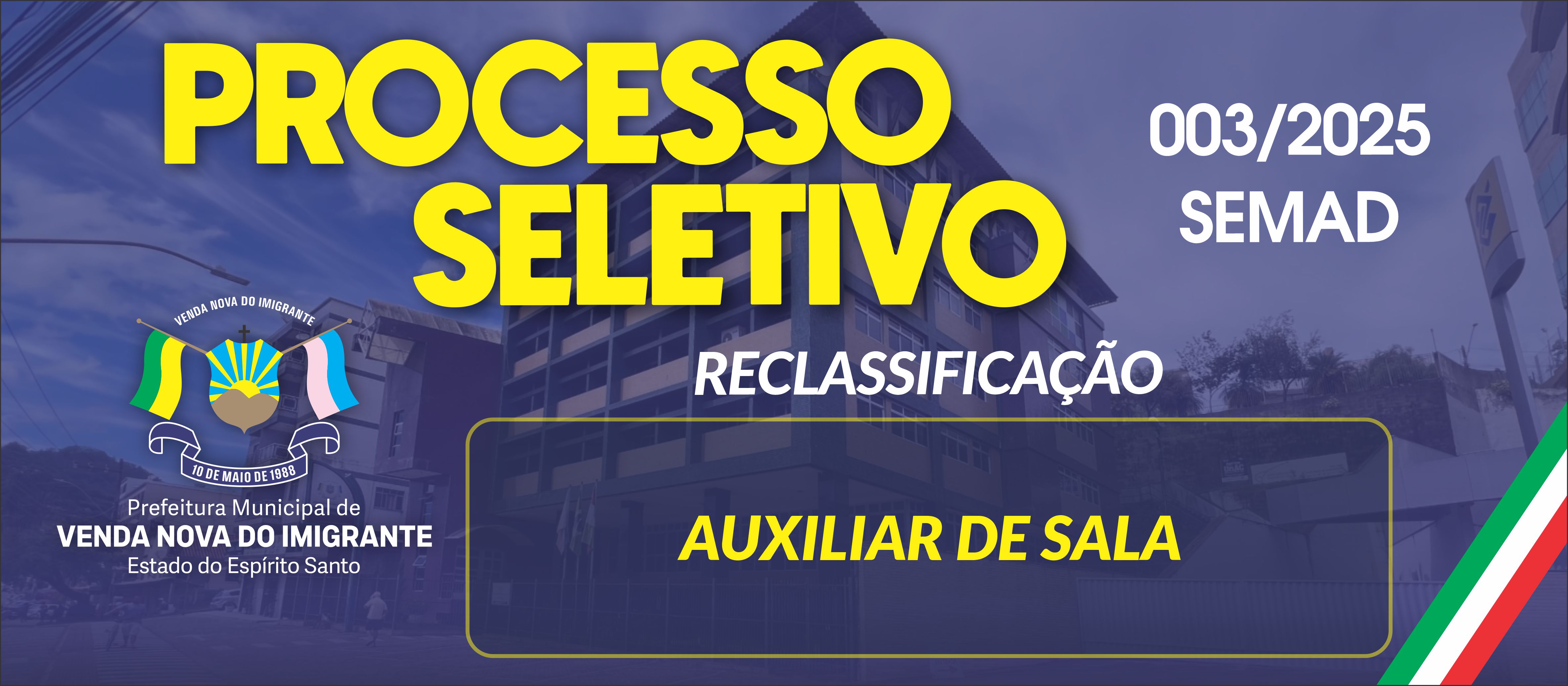RECLASSIFICAÇÃO - AUXILIAR DE SALA - EDITAL DE PROCESSO SELETIVO SIMPLIFICADO Nº 003/2025 - SEMAD
