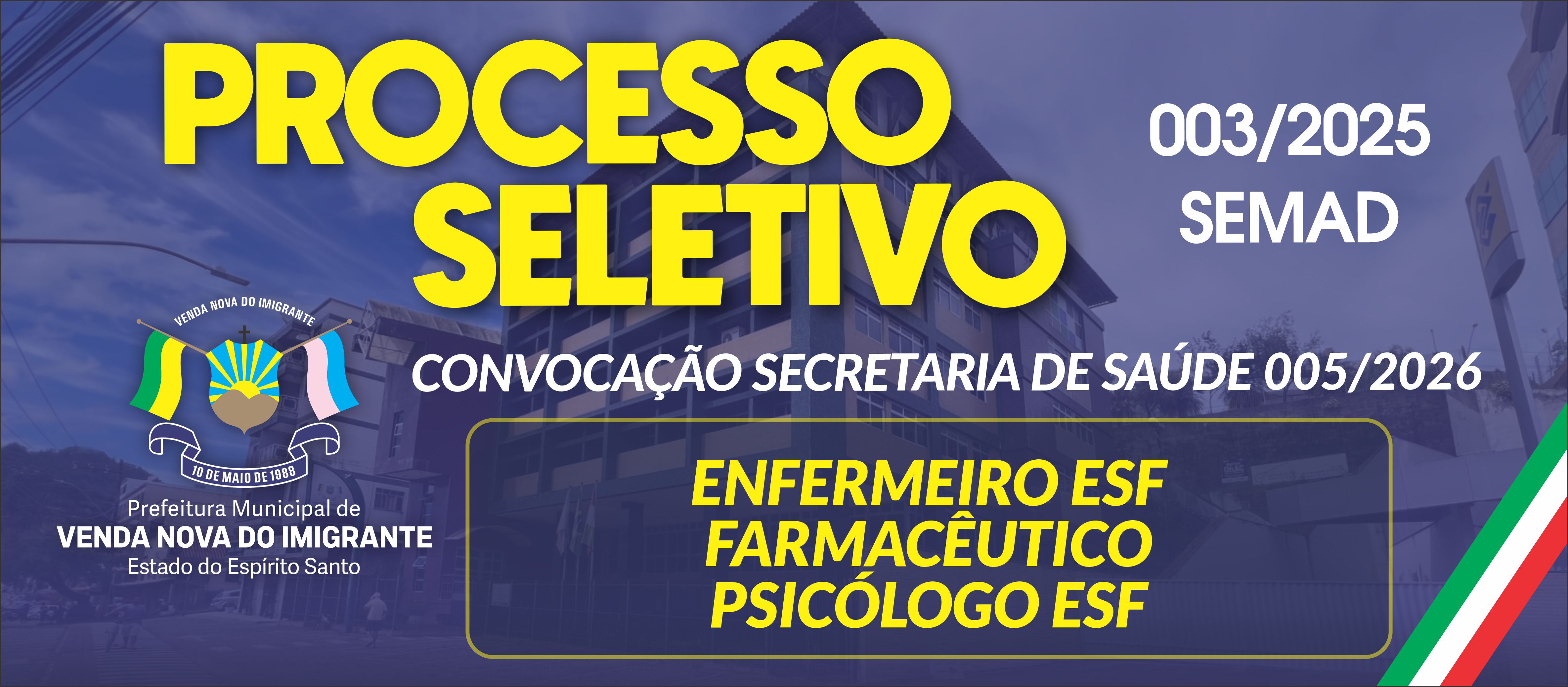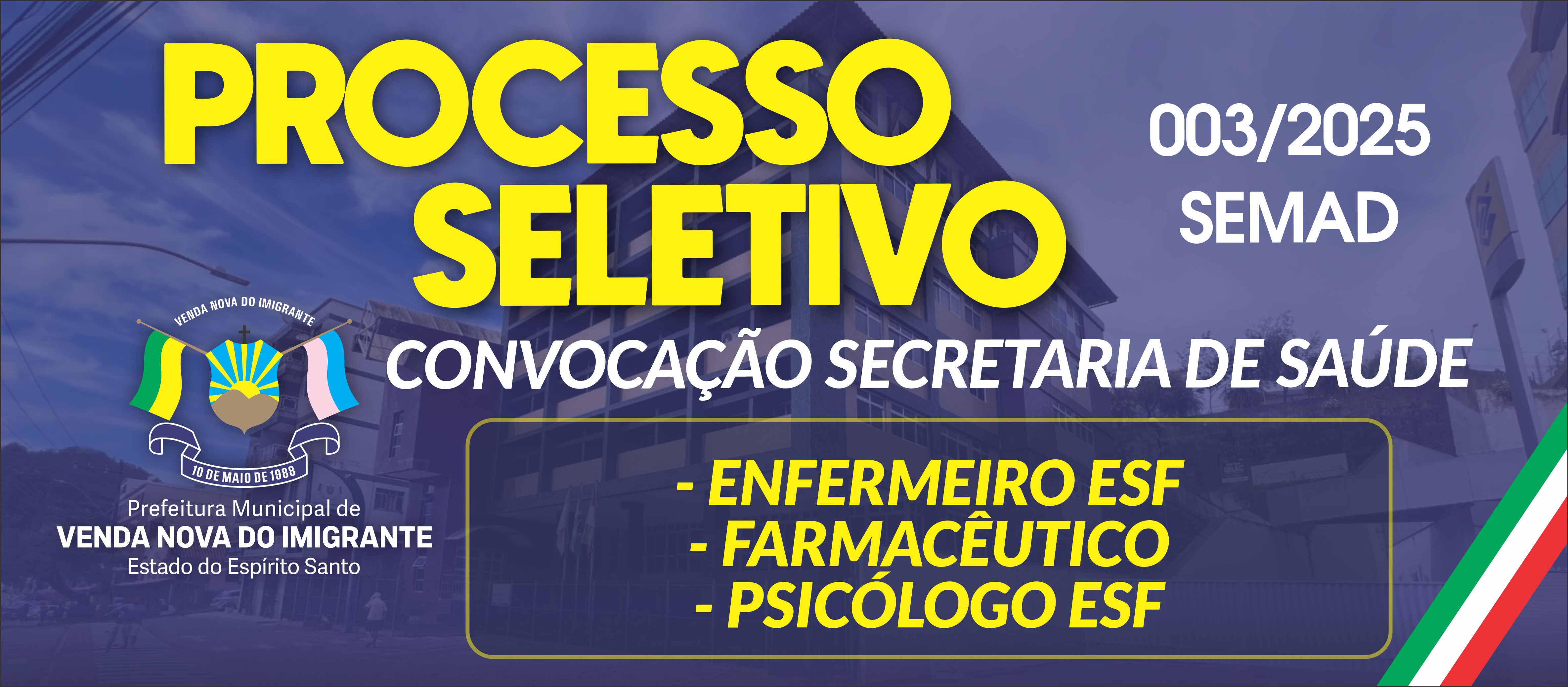 CONVOCAÇÃO - ENFERMEIRO ESF - FARMACÊUTICO - PSICÓLOGO ESF - SECRETARIA DE SAÚDE - EDITAL SEMAD N° 003/2025
