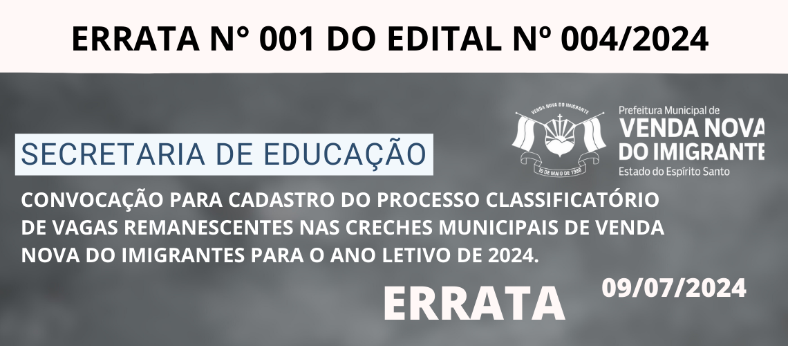 EDITAL Nº 004/2024 - ATENÇÃO CONFIRA A ERRATA